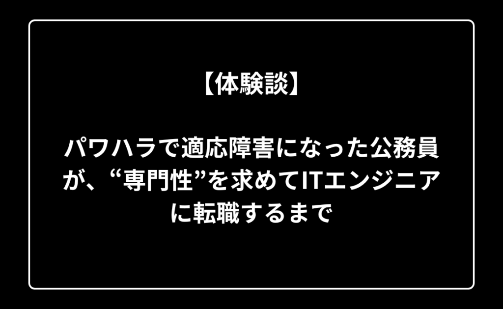 【体験談】パワハラで適応障害になった公務員が、“専門性”を求めてITエンジニアに転職するまで