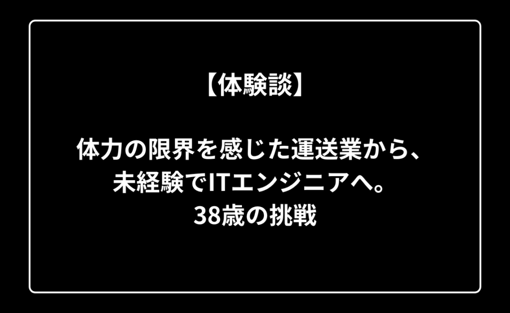 【体験談】体力の限界を感じた運送業から、未経験でITエンジニアへ。38歳の挑戦